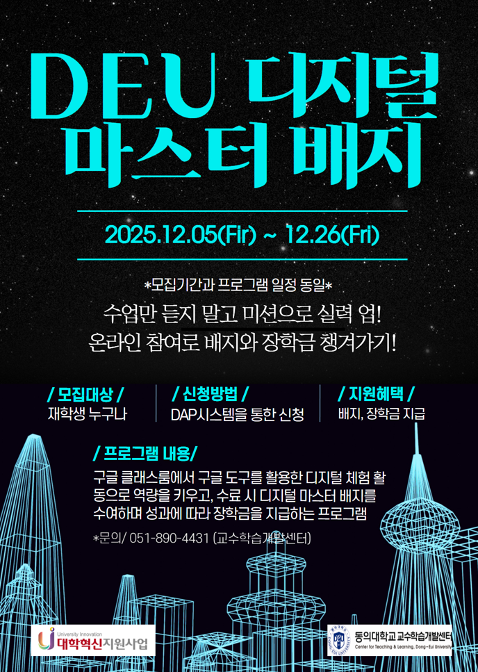 [대학혁신지원사업] 2025학년도 DEU 디지털 마스터 배지 신청 안내
